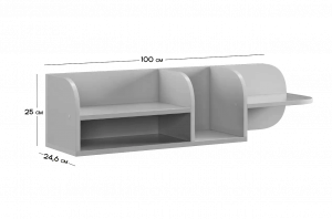 Полка состоит из прочного ЛДСП и имеет две открытые секции, которые удобно использовать для книг, игрушек, декора или учебных принадлежностей. Закруглённые боковые элементы придают конструкции мягкий, безопасный внешний вид, что особенно важно для детской комнаты.