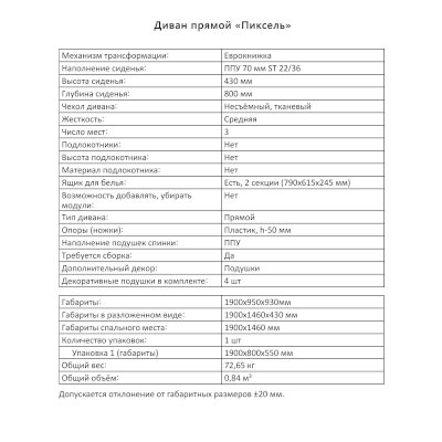 Диван Пиксель (Аквилон) продается в интернет-магазине v-saratove-mebel.ru по цене 30 299 руб. Есть доставка по Саратову и Саратовской области. Возможность подъема на этаж и сборки уточняйте у менеджера по телефону 8(800)505-27-11.